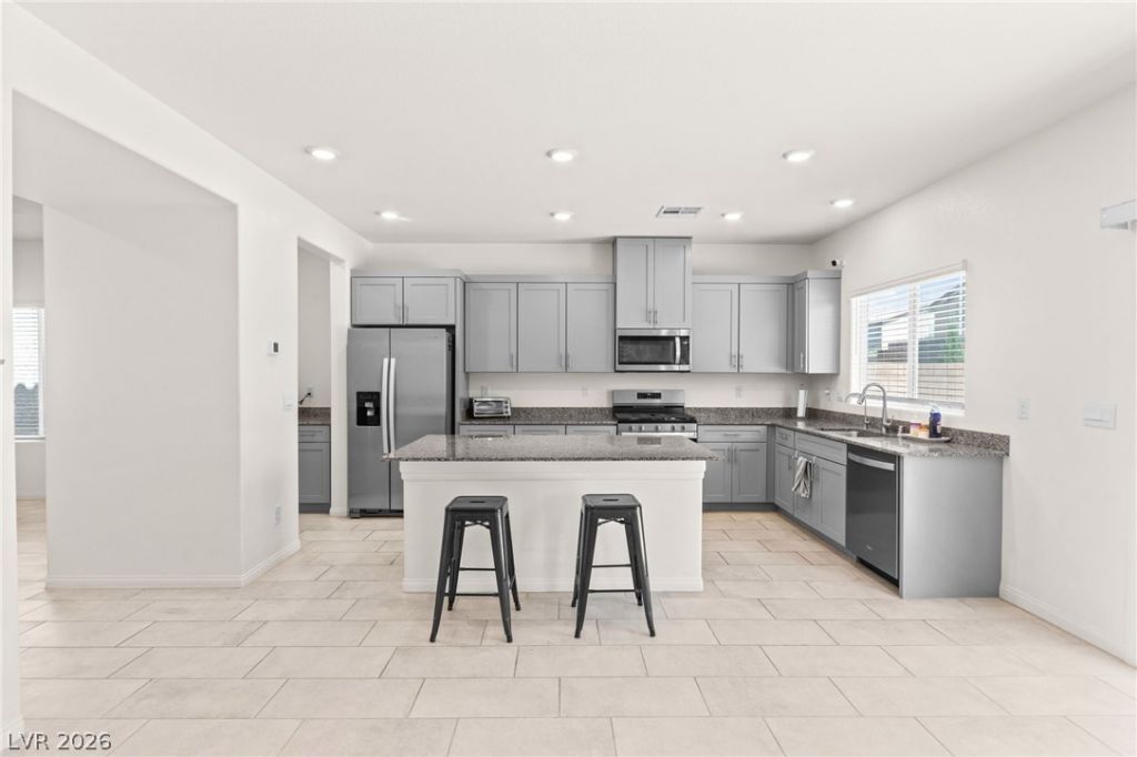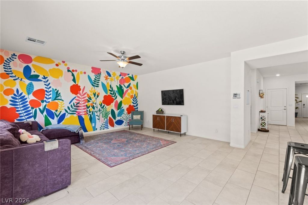Spacious and energy-efficient North Las Vegas home featuring 5 bedrooms and nearly 3,000 sq ft. Priced $30,000 below comparable new construction, an exceptional value. Open-concept floor plan with abundant natural light creates a bright, inviting living space. Kitchen offers ample storage and workspace, flowing seamlessly into main living and dining areas, ideal for entertaining. Includes solar system for energy efficiency and long-term savings. Generously sized bedrooms and a comfortable primary suite provide flexibility and function. Located in the desirable Tule Springs master-planned community, known for its parks, walking trails, and outdoor lifestyle. Residents enjoy access to playgrounds, sports courts, splash pad, and dog parks, along with scenic trails and nearby access to the Tule Springs Fossil Beds National Monument for hiking and nature exploration. Move-in ready with space, efficiency, and unmatched value!